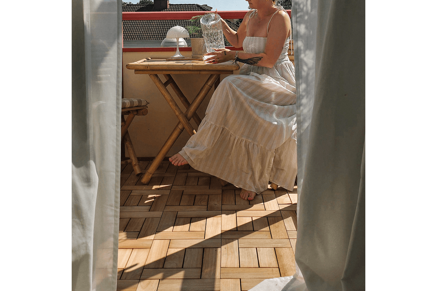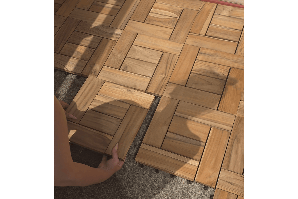 ✨ Ge din balkong en stilren uppgradering med Tanja Teakplatta – exklusiv design och enkel montering!