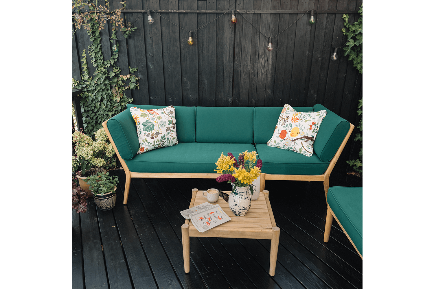 Sienna Lounge Hörnmodul – High Back är designad för att skapa en harmonisk och avkopplande loungeyta på balkongen. Denna nya modell har en hög, jämn rygg i massivt teak, vilket ger en stilren och bekväm sittupplevelse – perfekt för mysiga stunder utomhus.
