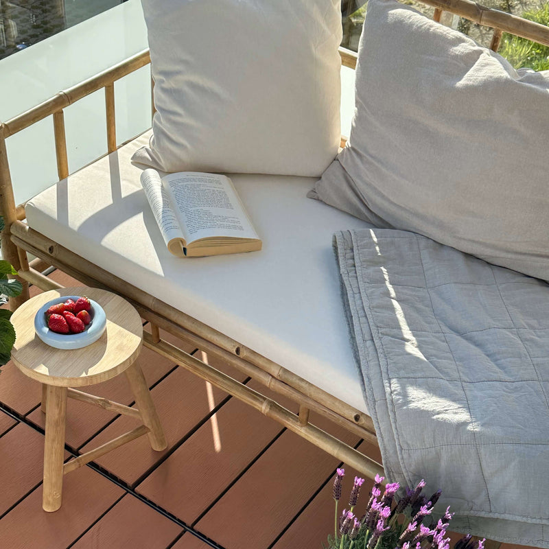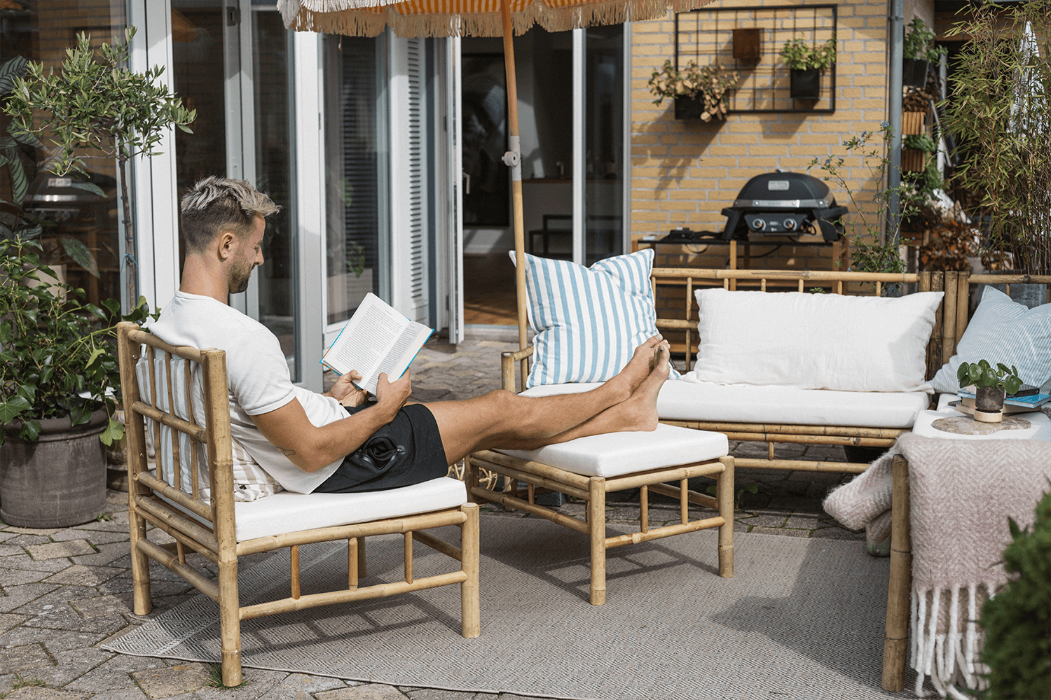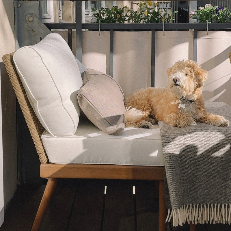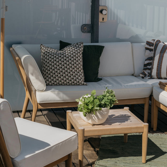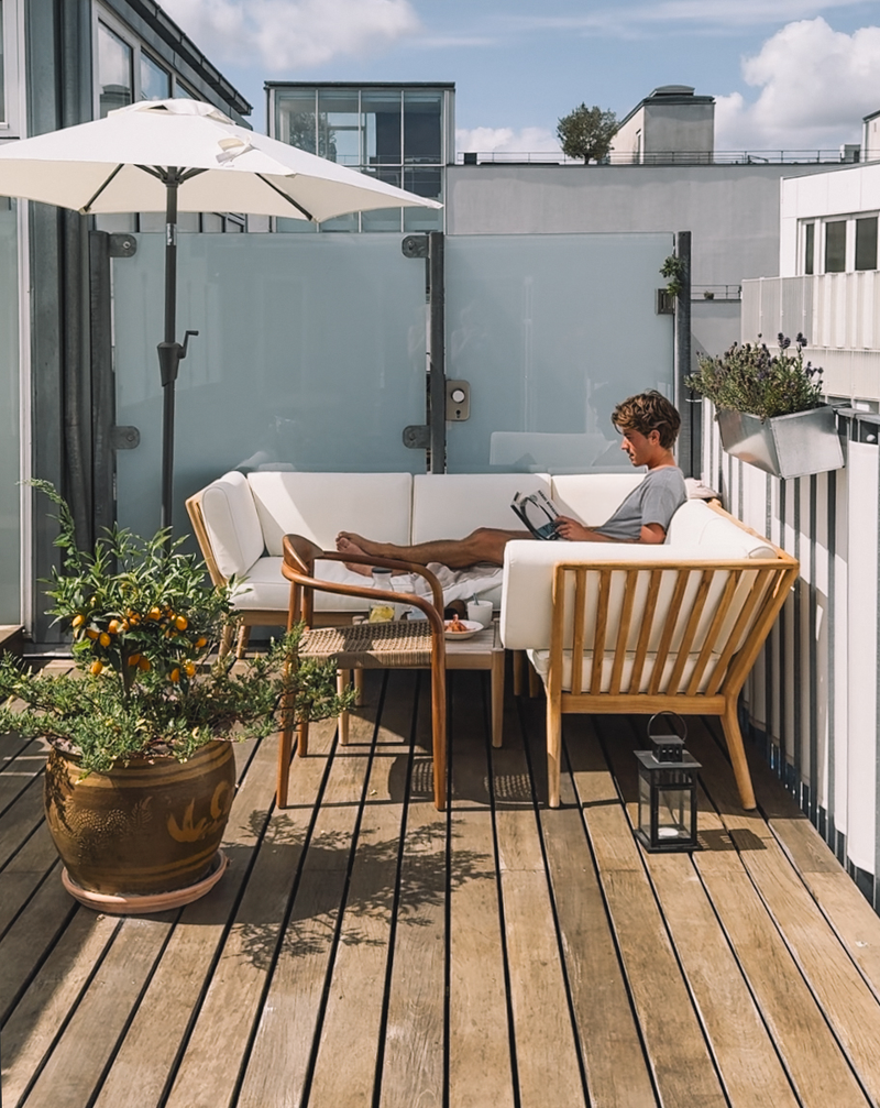 Ta denna konceptskiss och anpassa den efter balkongens storlek och behov. Ändra modulstorlekarna för att göra loungen större – eller lägg till extra moduler för att skapa mer plats.