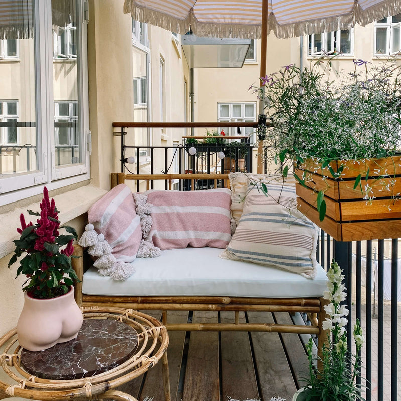 Här kan du se hur du på samma balkong kan skapa många olika loungeuppsättningar med vårt modulära system – beroende på om du vill ha en hörn- eller linjär lösning, om du behöver plats för en eller två, eller om du föredrar en helt sluten version med armstöd på båda sidor. Det finns en lösning för varje behov.