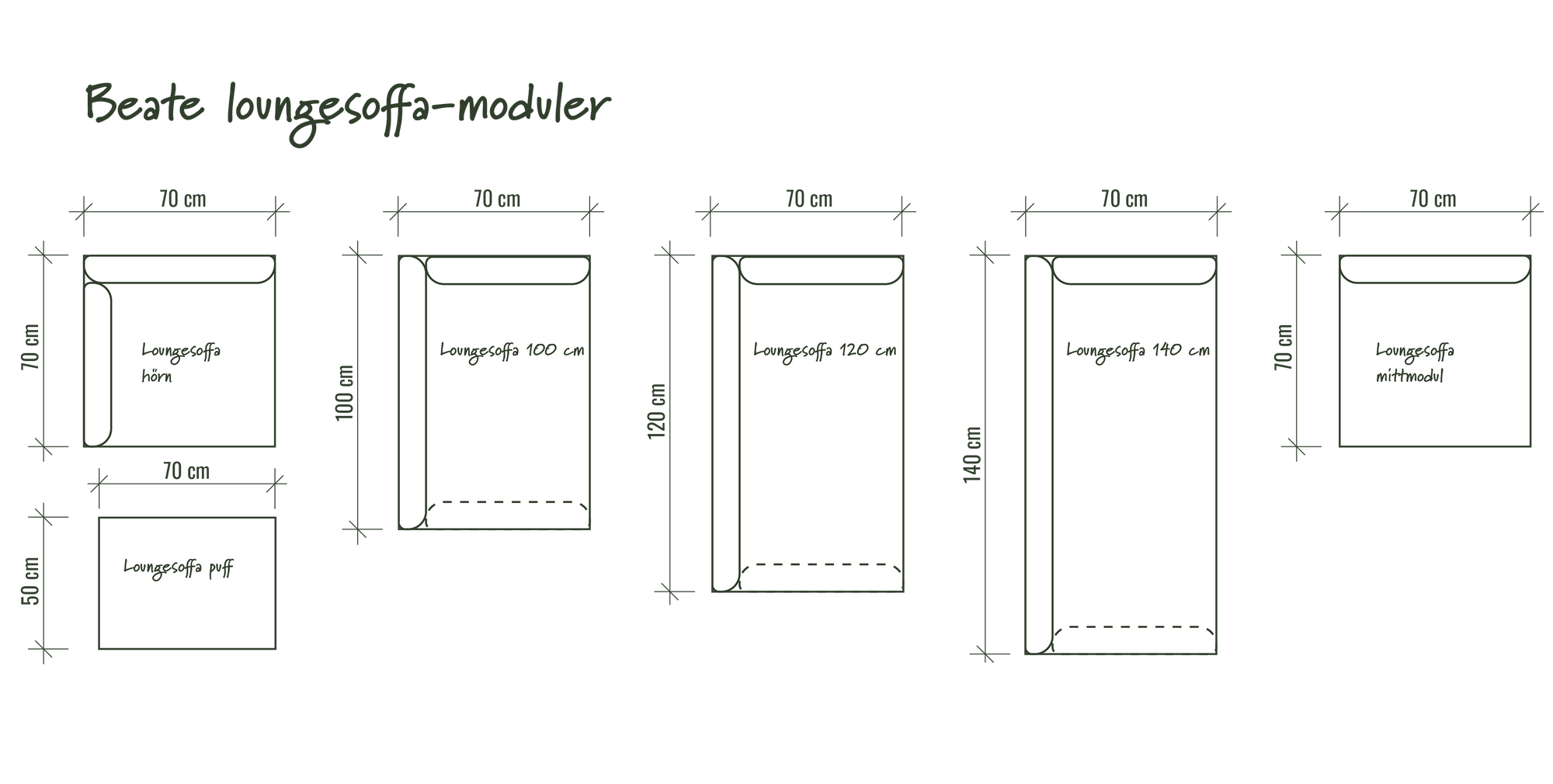 Våra lounger är moduluppbyggda, så att du kan skapa precis den uppställning som passar din balkong, terrass eller trädgård. Kombinera modulerna som du vill – och design din helt egna lounge som både matchar ditt utrymme och din stil.