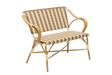 Det flätade sätet och ryggstödet är tillverkade i UV- och väderbeständig polyrattan som håller sig snygg utan att blekna i solen. Bänkens stomme är av pulverlackerad aluminium med bambuslook som ger både styrka och lätthet – helt underhållsfritt.