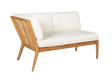 Sienna Lounge High Back – Vänster är en elegant loungsoffa i slitstarkt teakträ, designad för att erbjuda maximal komfort och en enhetlig estetik. Den höga ryggen är nu jämnt i nivå med soffans sidor, vilket skapar en mer harmonisk och inbjudande sittupplevelse.