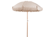 Det vackra Stine parasoll i naturfärg har både tilt och vackra fransar. Perfekt för att skärma av från solen på balkongen, stranden eller i trädgården. Parasollstång i behandlat bokträ och glasfiberstavar på 5 mm i duken gör den extra motståndskraftig mot vind. Det medföljande överdraget skyddar ditt Stine parasoll och med de påsydda remmarna på överdraget kan du enkelt ta parasollet över axeln och skapa ett skuggutrymme ute i det fria.