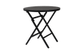 Fint runt, underhållsfritt cafébord i svart aluminium. Enkelt att fälla ihop, när det inte används.